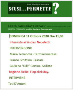 Sindaci neo-eletti protagonisti domenica 11 ottobre – ore 11:00 – del programma “Scusi… permette?” condotto da Pino Simplicio negli spazi di Radio Cammarata.