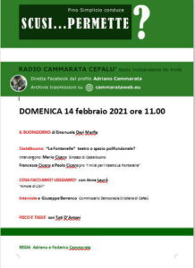 DOMENICA 14 febbraio 2021 ore 11.00 nel programma “Scusi… Permette?” condotto da Pino Simplicio negli studi di Radio Cammarata – regia Adriano e Federico Cammarata – questi gli argomenti in scaletta:
