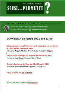 DOMENICA 18 Aprile 2021 ore 11.00 la rubrica di attualità di Pino Simplicio “Scusi… Permette?” ha in scaletta: