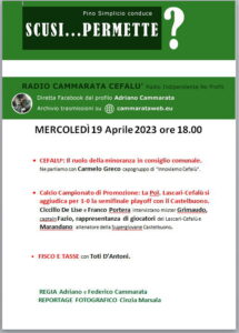 MERCOLEDÌ 19 Aprile 2023 ore 18.00, la rubrica di attualità condotta da Pino Simplicio, negli studi di Radio Cammarata, propone questi argomenti: