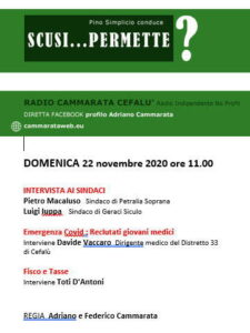 Sindaci, Covid e Fisco i temi affrontati da Pino Simplicio domenica 22 novembre – ore 11:00, nella rubrica di attualità: Scusi… Permette?