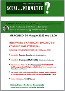 MERCOLEDÌ 24 Maggio 2023 ore 18.00 “Scusi… Permette?” la rubrica di attualità condotta da Pino Simplicio, negli studi di Radio Cammarata, affronta questi argomenti:
