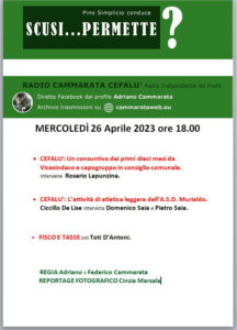 MERCOLEDÌ 26 Aprile 2023 ore 18.00, la rubrica di attualità condotta da Pino Simplicio, negli studi di Radio Cammarata, affronta questi argomenti:
