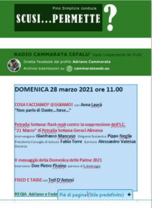 DOMENICA 28 marzo 2021 ore 11.00 la rubrica di attualità di Pino Simplicio “Scusi… Permette?” ha in scaletta:
