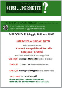 MERCOLEDÌ 31 Maggio 2023 ore 18.00 “Scusi… Permette?” la rubrica di attualità condotta da Pino Simplicio, negli studi di Radio Cammarata, affronta questi argomenti: