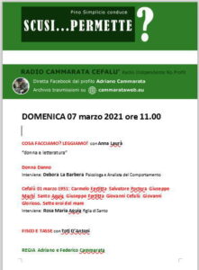 DOMENICA 7 marzo 2021 ore 11.00 la rubrica di attualità di Pino Simplicio “Scusi… Permette?” ha in scaletta: