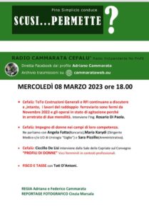 La rubrica “Scusi… Permette?” condotta da Pino Simplicio, in onda mercoledì 8 marzo 2023 dagli studi di Radio Cammarata, ore 18:00, propone questi servizi: