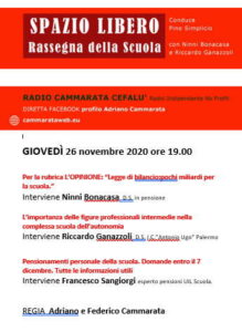 Questa è la scaletta della rubrica sulla scuola, curata da Pino Simplicio negli studi di Radio Cammarata.
